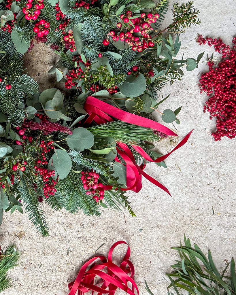 Please note: As this wreath is crafted from natural materials, each one is unique and colours may *vary ever so slightly* to the images. To keep it looking fresh, simply mist it with water regularly—it will stay beautiful on your door for at least four weeks.