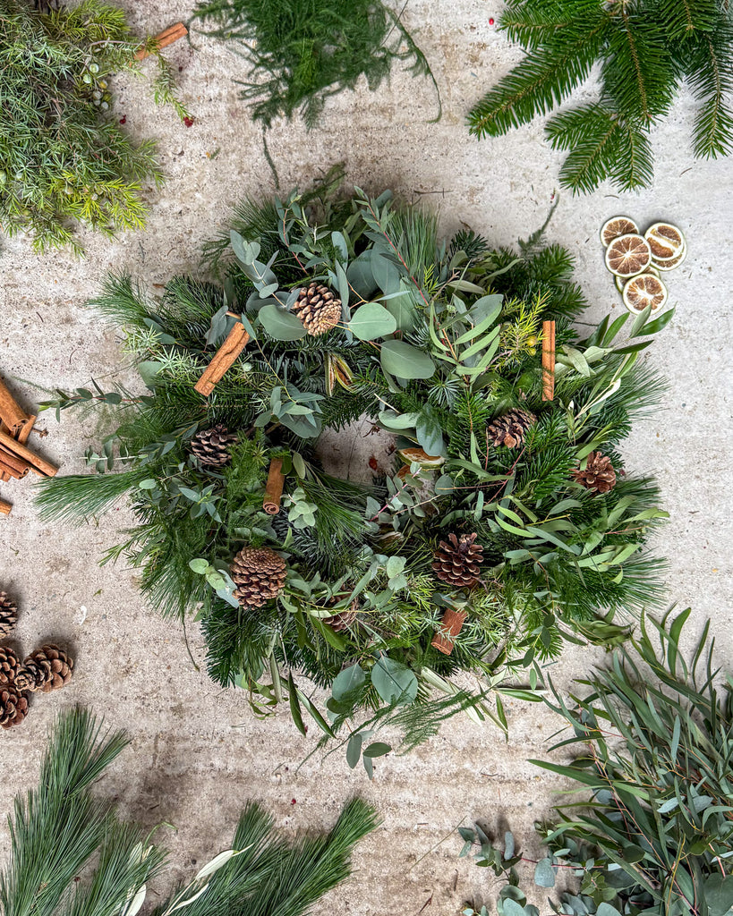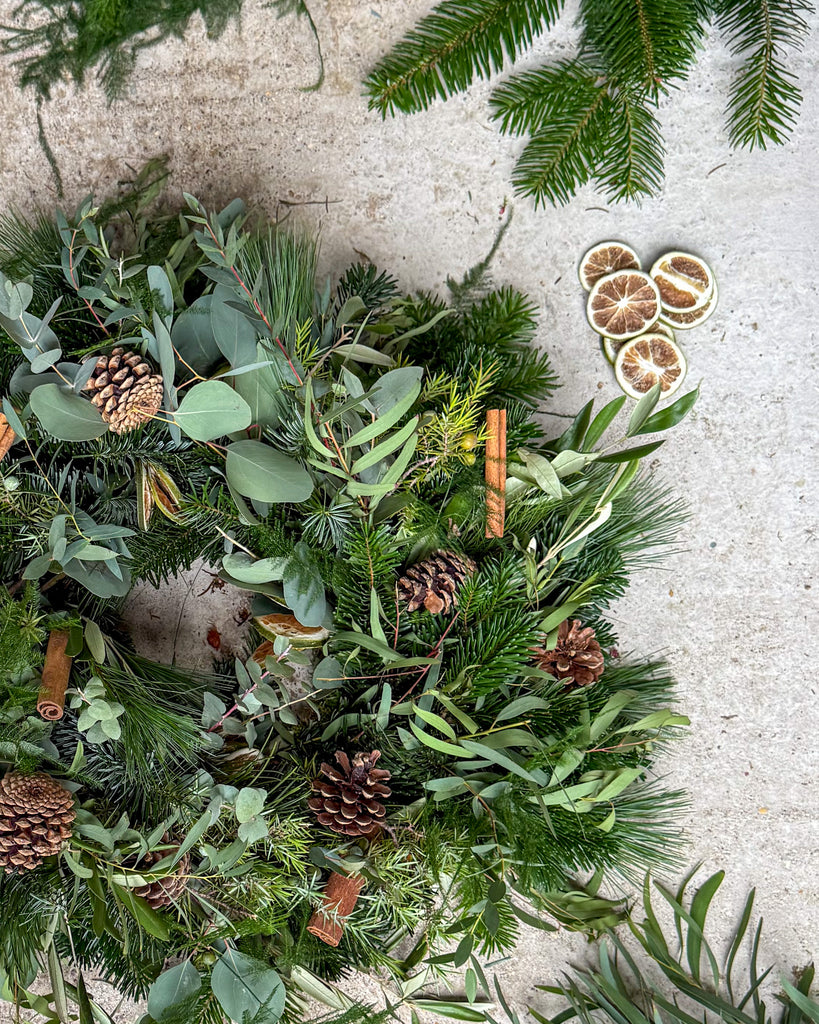 Please note: As this wreath is crafted from natural materials, each one is unique and colours may *vary ever so slightly* to the images. To keep it looking fresh, simply mist it with water regularly—it will stay beautiful on your door for at least four weeks.